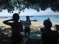 そして、泳ぐ準備を整え、海に向かう。さすが、JICAの方々、シュノーケリンググッズをちゃんと準備して来られている。かくいう私は、サンダルすら持っていない。全て(服以外)をお借りした。
