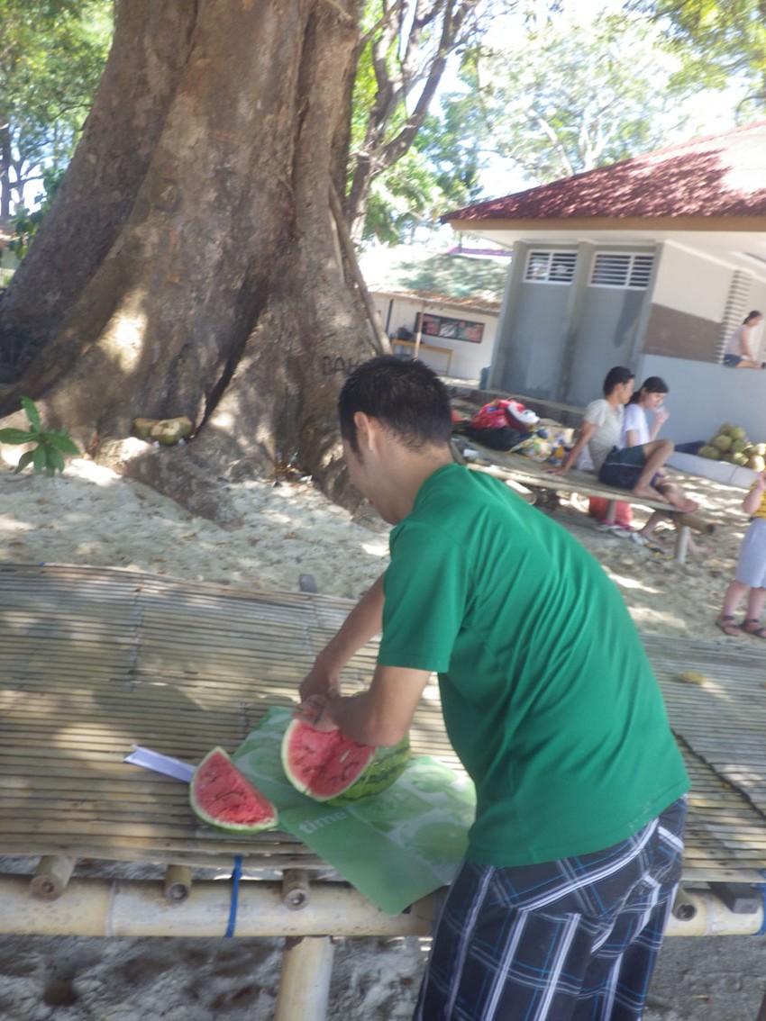 とりあえず、料理担当の杉本さんに切ってもらって、スイカをいただく。