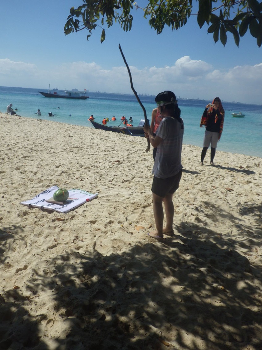 海泳いで、ゆったりして、さて、帰るかと思った矢先、スイカ割の準備が始まった。