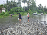 さっきよりも死ぬほど悪い道を通って、川のそばに出る。
