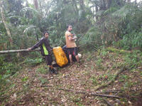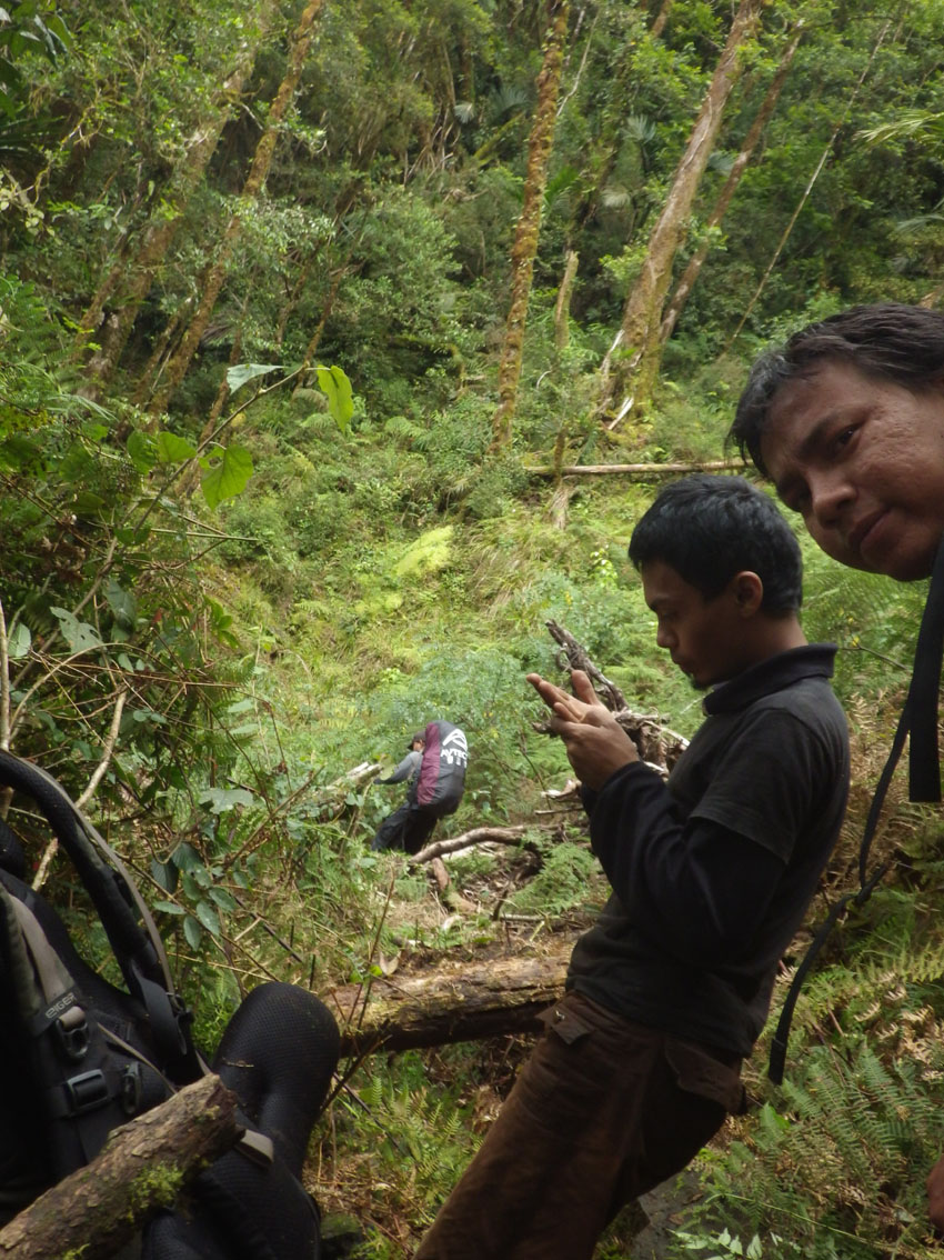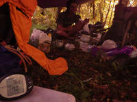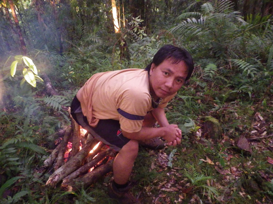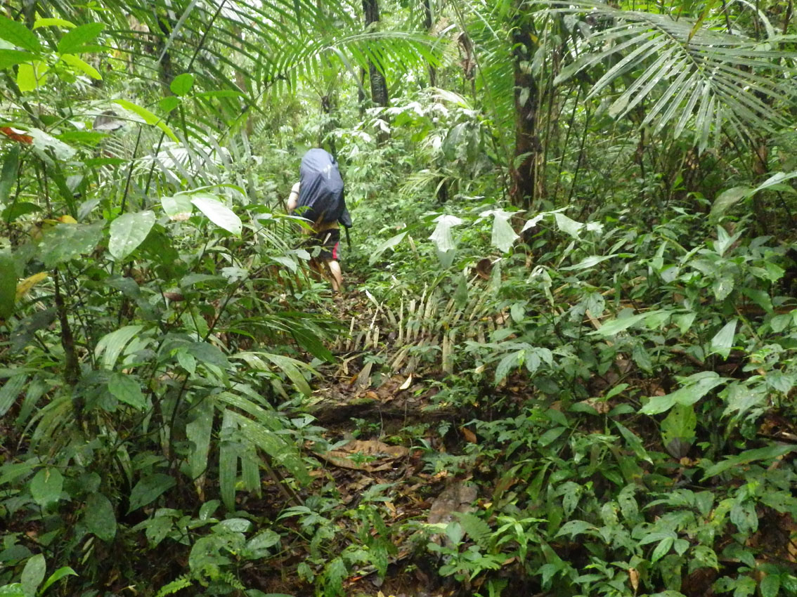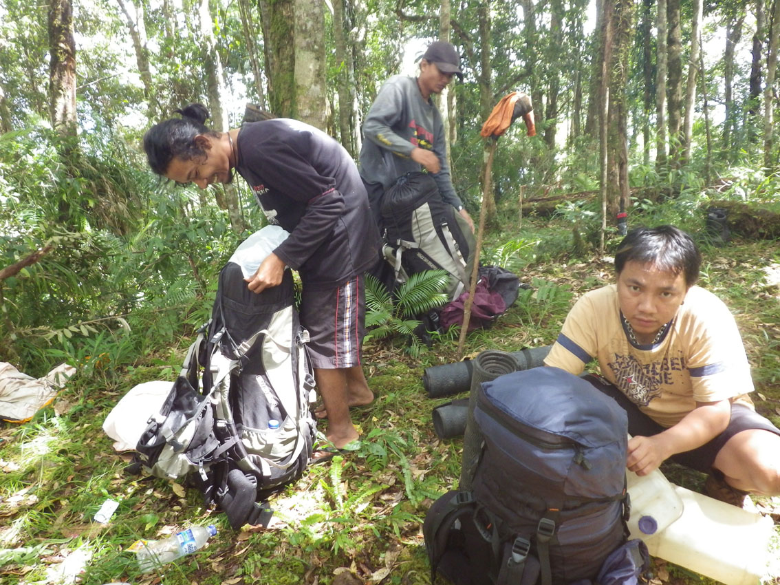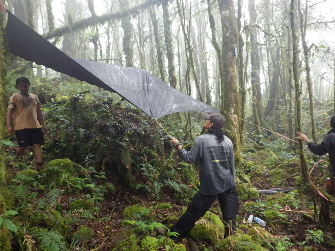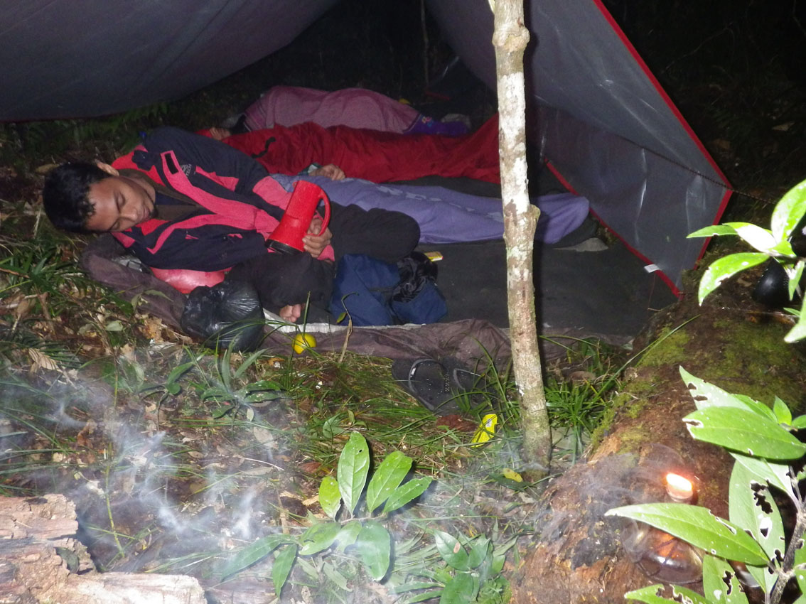 そして、夕方4時くらい。Pos3到着。小さな川がすぐそばにあり、ここにテントを張り、泊まった。標高約1000 m。トラップを仕掛ける。