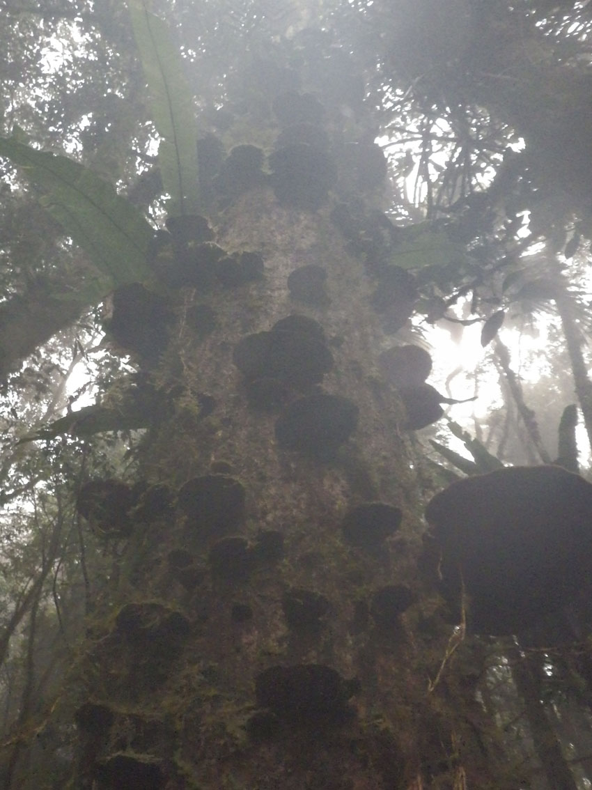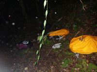 近くには、たくさんのキノコがあって夜に調査区を設けて調査。