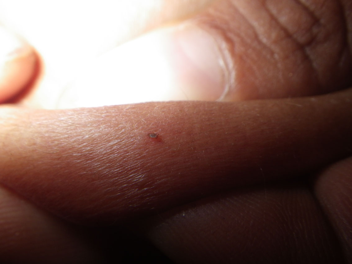 このダニは、意外と痛い。どうもこの辺には2種類のダニが噛んでくるようだ。