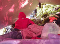 めちゃめちゃ寝にくかった。石、木の根っこなど、様々な障害が背中に負担をかけてくるのと、とにかく、寒い。