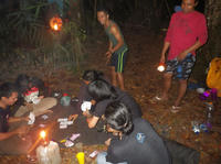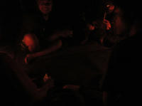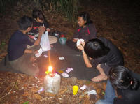 夕食終了後、カードゲームに興じる、みんな。