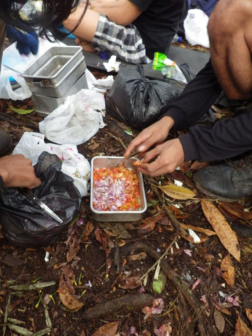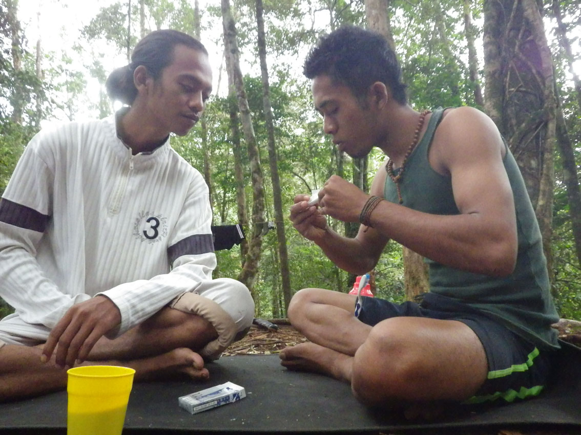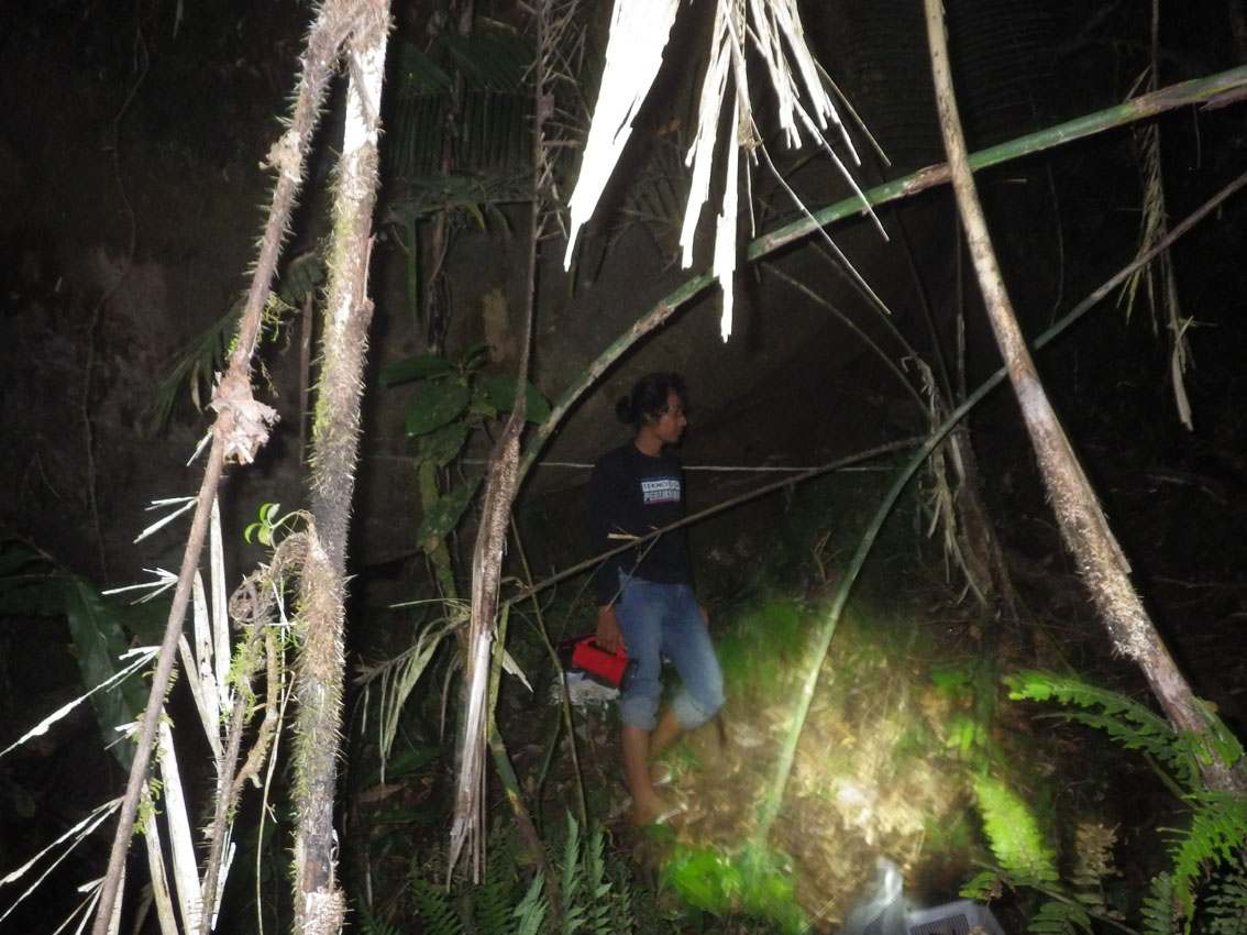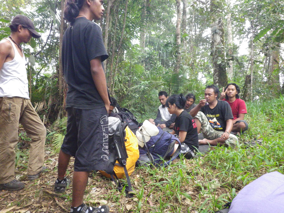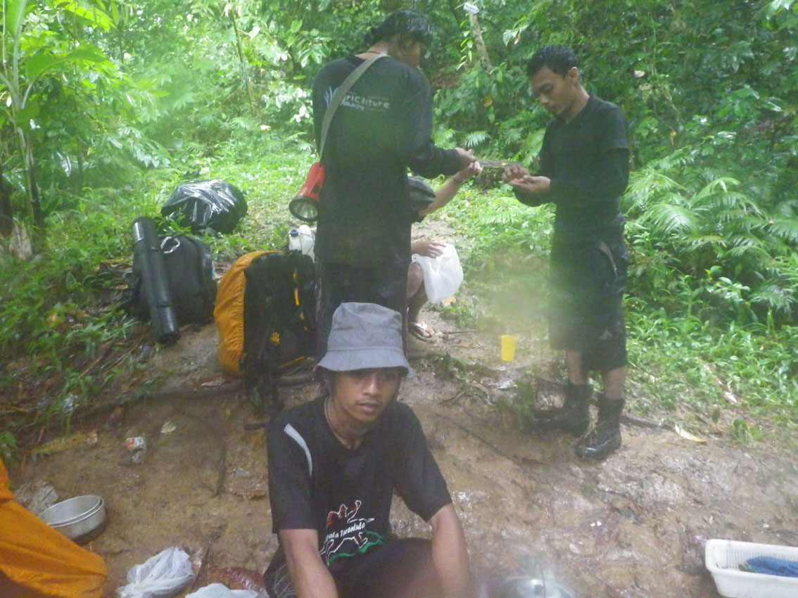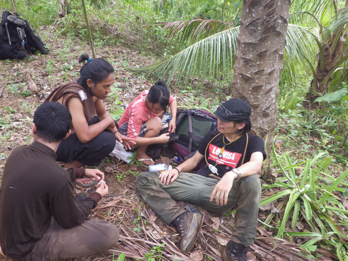 食べ終わって、また、山へ。今度はトラップのために1500mまで登る。