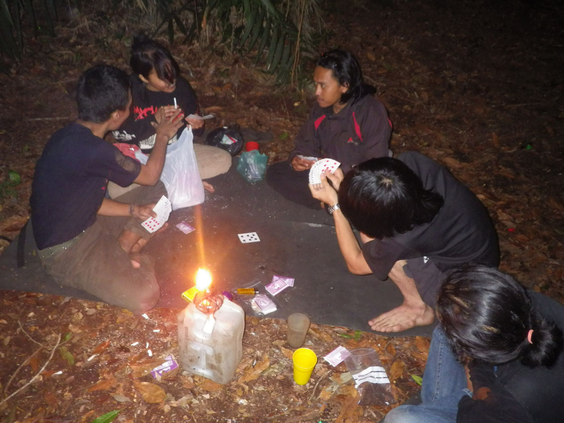 3.もし、出せない場合は、どれかカードを伏せる(mati or tutupと言いながら)。ちなみにこの伏せるカードはなるべく、数が小さいほうがいい。なぜなら最後に、合計数の精算で勝敗が決まるからだ。