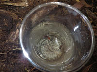 そして、トラップを少し観察。おー入ってる入ってる。オレンジのデオキノコがはいっとる。