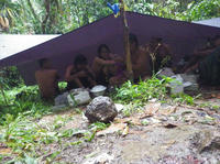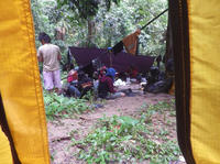 さ、さむい。みんなで震えながら、テントの下で固まっていた。