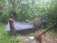 ご飯を食べて、テントへ。テントも大雨のせいで、どこからか水が浸入してくる・・・。